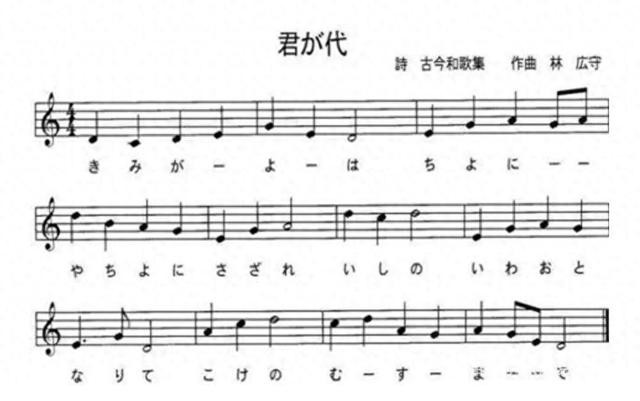他们在日本宫廷音乐传统音阶的基础上,选择了早弘盛所作的旋律,并将国歌分为 4 部分来歌唱。